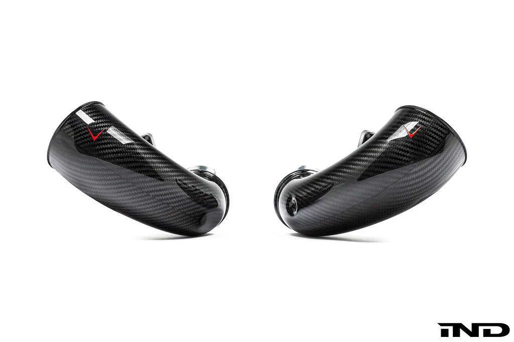 Представляем набор Carbon Turbo Inlet от Eventuri, который оптимизирует путь потока до турбин. Эти карбоновые впускные отверстия имеют больший объем, чем стандартные, за счет сохранения большего диаметра на всем пути к турбинам. Стандартные впускные отверстия сужаются сразу после соединения с впускным отверстием, что создает ограничение, особенно при более высоких уровнях наддува. Ребята из Eventuri смягчили это ограничение, а также сделали изгиб максимально плавным, что позволяет турбинам быстрее достигать пикового наддува