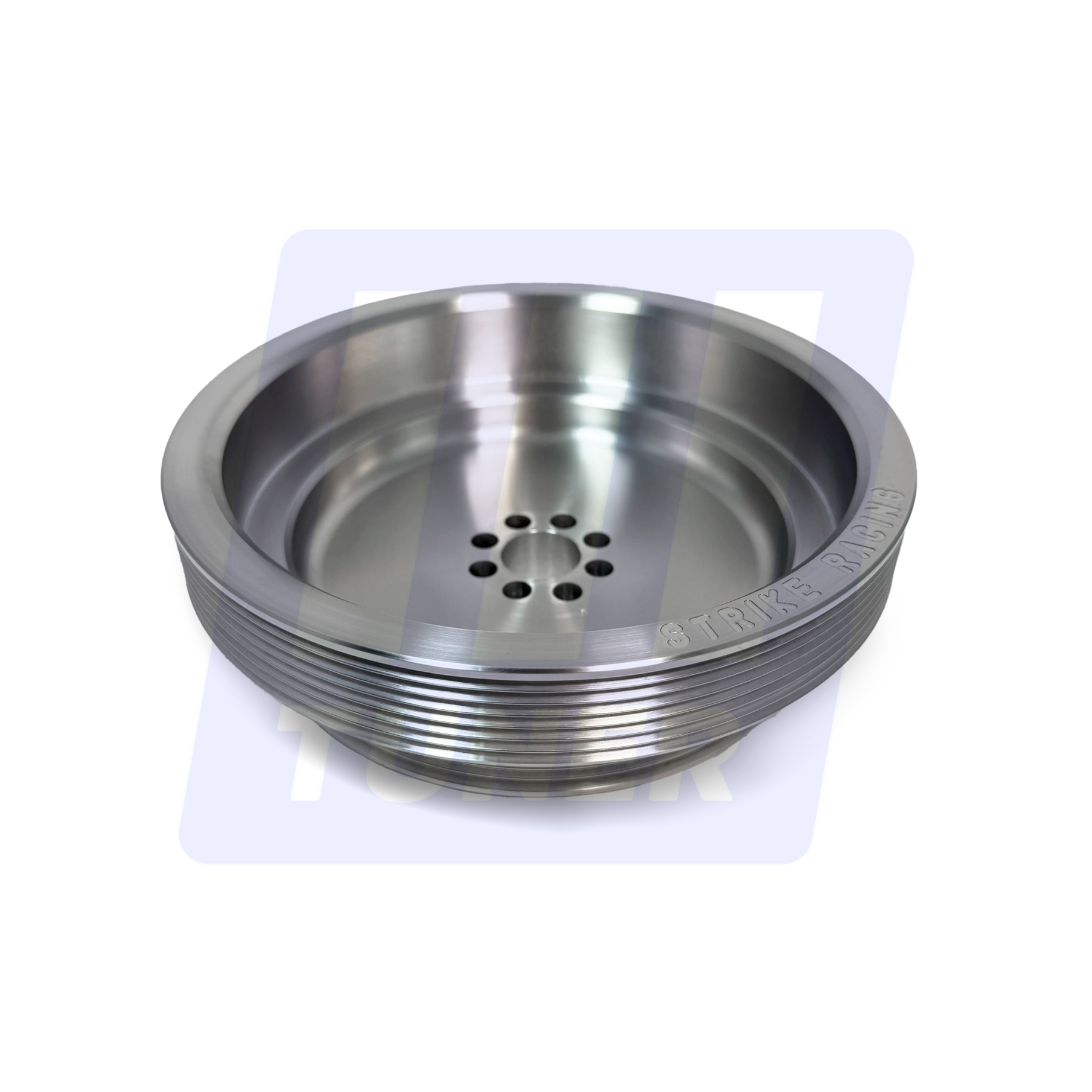 <h2>StrikeRacing шкива коленчатого вала Audi B8/B8.5 S4/S5/Q5/SQ5 и Audi C7 A6/A7 4G 3.0 TFSI Supercharger 198мм</h2><br /><br />Комплект StrikeRacing 3.0 TFSI Supercharger 198 мм для модернизации шкива коленчатого вала B8/B8.5 Audi S4/S5/Q5/SQ5 и C7 Audi A6/A7 4G— это простой способ увеличить скорость вращения компрессора, чтобы повысить мощность двигателя.<br />Этот комплект подходит как для оригинального шкива компрессора, так и для модернизированного шкива нагнетателя 57.5мм.<br />Усовершенствованный 198-миллиметровый шкив коленчатого вала изготовлен из цельной заготовки из алюминия. Эта конструкция на 55 % легче оригинального шкива, что значительно снижает вращательный вес и паразитные потери. Это цельный внутренний и внешний шкив, а не «накладка» на шкив, которая увеличивает вращательный вес.<br />В комплекте болты имбус с покрытием,12.9<br />Обратите внимание,что одно из восьми установочных отверстий смещено относительно центра и обозначено спец меткой.<br />При установке учитывайте это.<br /><br /> Если вы используете только нижний шкив коленвала-то вам потребуется ремень 7pk1338.<br /> Если вы используете верхний и нижний шкив коленвала-то вам потребуется ремень 57/198 -7pk1325.