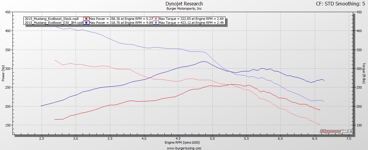 <h2>JB4 для Ford Mustang 2.3L EcoBoost</h2>Прибавка мощности до 60 сил и 100 крутящего момента с колёс на полностью стандартном автомобиле!<br /><br />Блютус адаптер продается ОТДЕЛЬНО<br /><br /><br /><br />Подходит для автомобилей:<br /><br />Ford<br /><br />• 2015-2023 Ford Mustang EcoBoost® 2.3L<br />• 2024+ Ford Mustang EcoBoost® 2.3L<br />