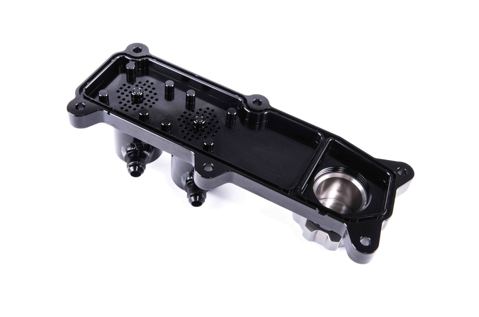 Система маслоотводной системы RacingLine оснащена полным блоком замены PCV и резервуаром с внутренней перегородкой, которые очищают промежуточный охладитель и впускные каналы от остатков масла и обеспечивают чистый поток воздуха через впускной коллектор.