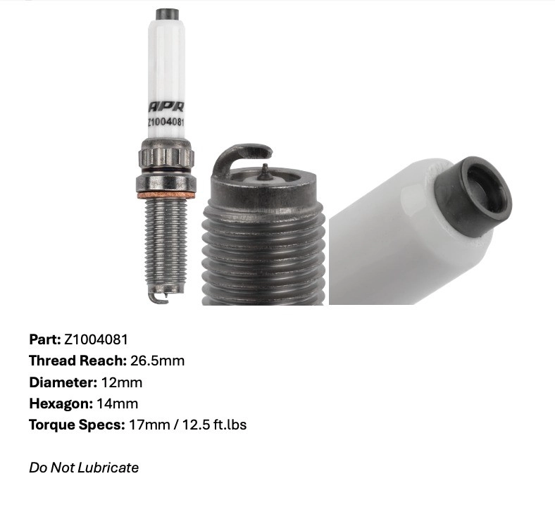 APR Z1004081 Иридиевая свеча зажигания (10)Свечи зажигания APR Iridium Pro - это отличное решение для тюнингованных двигателей.Cвечи зажигания APR изготовлены из иридия, который является одним из самых прочных материалов, которые вы можете использовать в двигателях такого типа.Они холоднее, устойчивы к преждевременному возгоранию, служат дольше, чем другие материалы с более высокой температурой плавления, и даже требуют меньшего напряжения для получения сильной искры.Электрод тверже и прочнее других материалов, а благодаря медной сердцевине легче отводит тепло, лучше защищен от плавления, растрескивания и других недостатков, присущих стандартным заглушкам.Эти свечи были разработаны для использования на тюнингованных автомобилях с более высокой мощностью, которые оснащены системой охлаждения свечей по сравнению с заводским тепловым диапазоном.Они отлично подходят для работы с высоким наддувом, высоким давлением в цилиндрах, высокой температурой в цилиндрах и высокой мощностью, а также прекрасно сочетаются с комплектом катушек зажигания APR, где это применимо.Особенности:Свеча зажигания с калильным числом 10 (аналогичные: Bosch 2, Brisk 8, Denso 31 и NGK 10)Температура плавления на 152% выше, чем у серебра, на 125% выше, чем у меди, и на 38% выше, чем у платины.Прочнее меди и платиныРазработан для применения в автомобилях с высокой производительностью и тюнингомКонструкция изолятора без выступовБолее низкое требуемое напряжение питанияРабочая температура ниже, чем у стандартных свечей зажиганияОптимизированная конструкция электродов для трудновоспламеняющихся топлив, таких как этанолУстойчивость к преждевременному возгоранию выше, чем у стандартных свечей зажиганияИдеально подходит для модернизированных автомобилей APRОтлично подходит для катушек зажигания APRДлина резьбы: 26,5 ммДиаметр резьбы: 12 ммШестигранник: 14 ммТип посадочного места: ПрокладкаМомент затяжки: 17 НмМатериал изоляции: керамикаПрилагаемый зазор: .55 мм +- .05 ммна 2 ступени холоднее, чем в оригинале (4,0T EA825)На 1 ступень холоднее, чем в оригинале (2,9T/3,0 T EA839, 2,0T/2,5T/3,0T/3,7T 9A2).