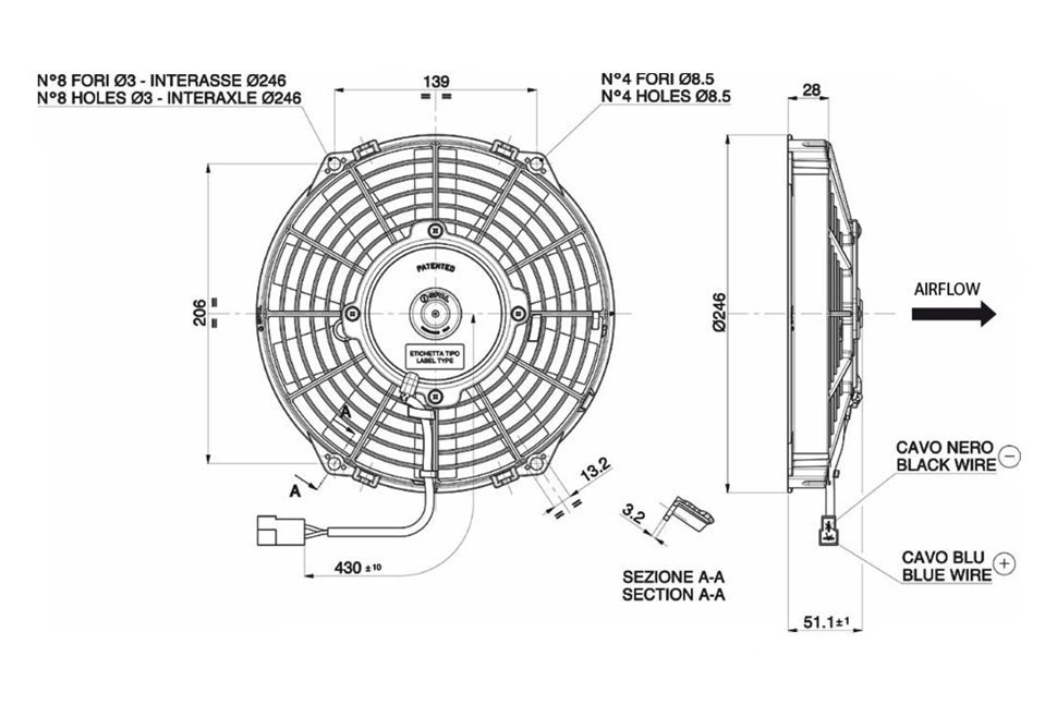 Вентилятор втягивающий (за радиатором) 9" (225mm) 920 м3/ч SPAL VA07-AP12/C-31A