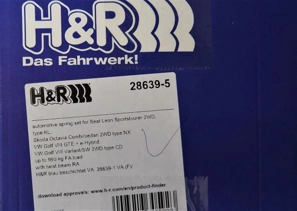 H&R 28639-5 Комплект пружин с занижением для Skoda Octavia A8Спортивные пружины H&R разработанные для повседневной езды, являются идеальным решением улучшения управляемости вашего автомобиля!Параметры занижения для Skoda Octavia A8:Передняя ось -45 ммЗадняя ось -35 мм.