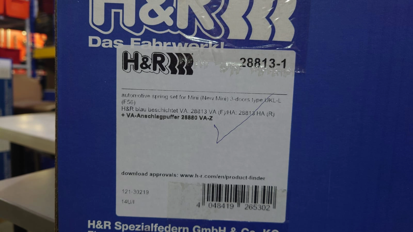 H&R 28813-1 Комплект пружин с занижением для Mini Cooper F56Спортивные пружины H&R разработанные для повседневной езды, являются идеальным решением улучшения управляемости вашего автомобиля!Параметры занижения для Mini Cooper F56 (включая JCW):Передняя ось -30 ммЗадняя ось -30 мм.