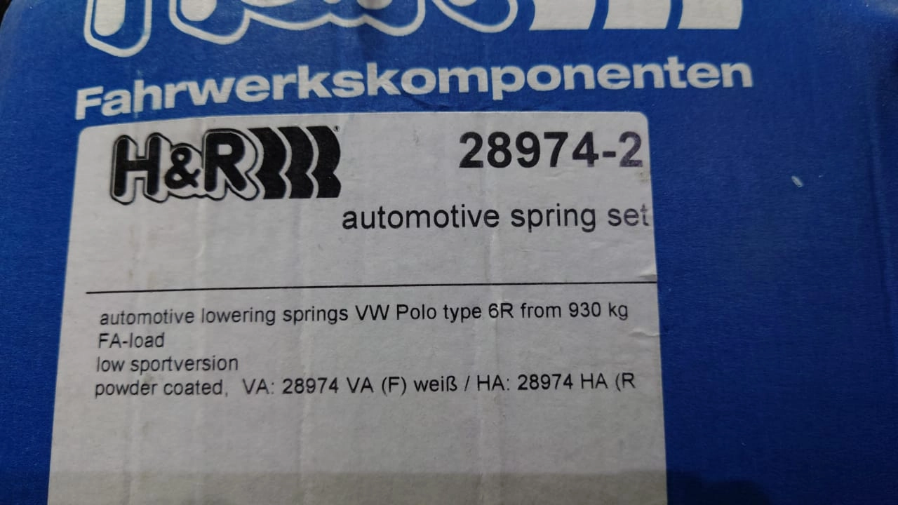 H&R 28974-2 Комплект пружин с занижением для VW Polo MK5 (6R) хетчбэкСпортивные пружины H&R разработанные для повседневной езды, являются идеальным решением улучшения управляемости вашего автомобиля!Параметры занижения для VW Polo 6R 2009-2017:Передняя ось -35 ммЗадняя ось -55 мм.Параметры занижения для VW Polo 6R GTI 2010-2017:Передняя ось -30 ммЗадняя ось -45 мм.