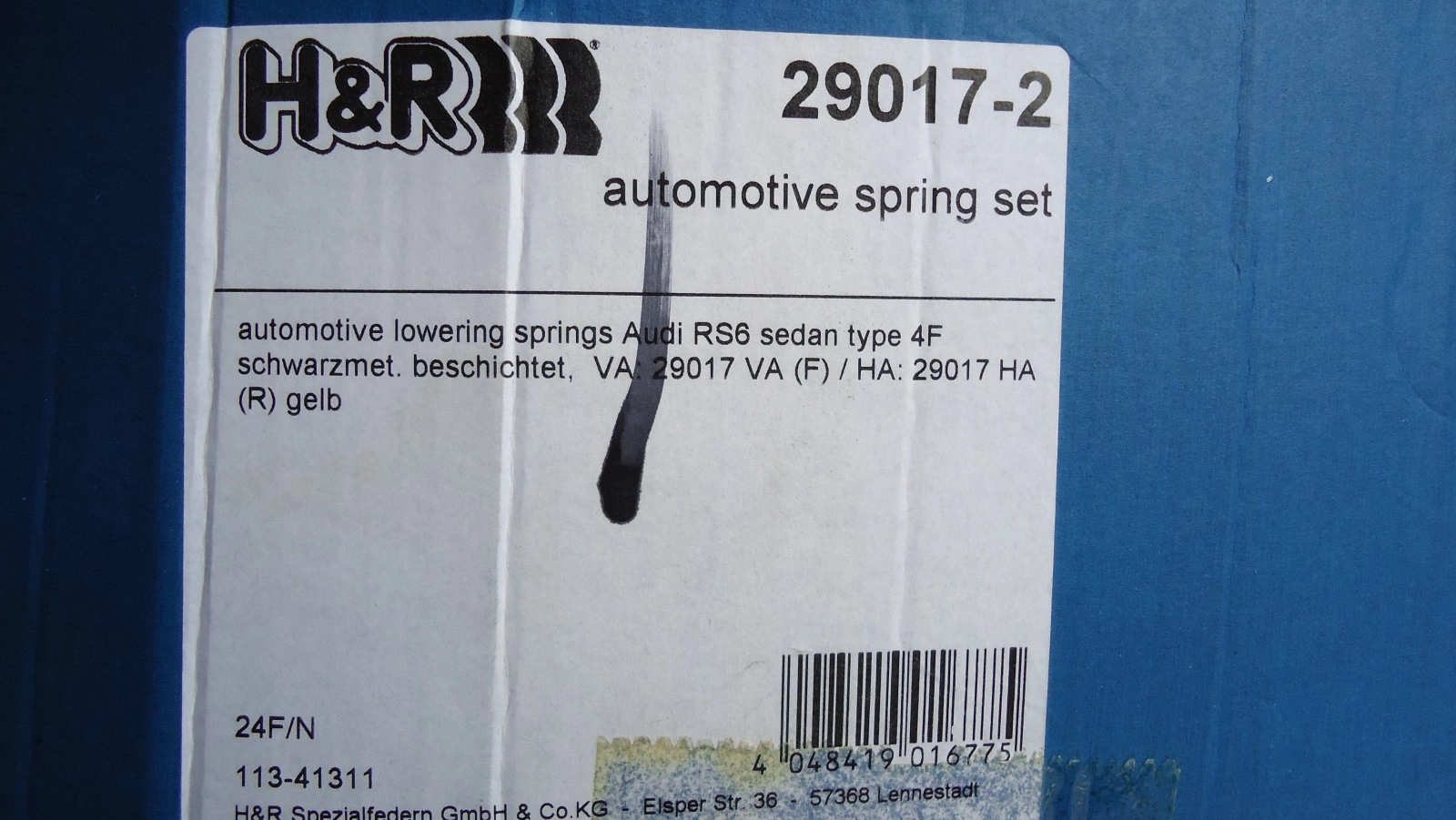 H&R 29017-2 Комплект пружин с занижением для Audi RS6 (C6)Спортивные пружины H&R разработанные для повседневной езды, являются идеальным решением улучшения управляемости вашего автомобиля!Параметры занижения для Audi RS6 (4F) C6 седан 2008-10 :Передняя ось -30 ммЗадняя ось -30 мм.
