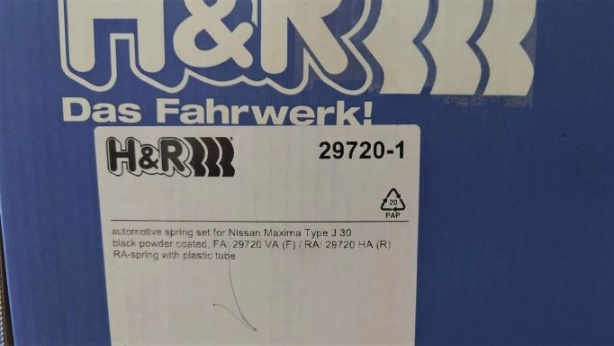 H&R 29720-1 Комплект пружин с занижением для Nissan Maxima J30 CefiroСпортивные пружины H&R разработанные для повседневной езды, являются идеальным решением улучшения управляемости вашего автомобиля!Параметры занижения для Nissan Maxima J30 Cefiro 1989-1995 :Передняя ось -40 ммЗадняя ось -40 мм.