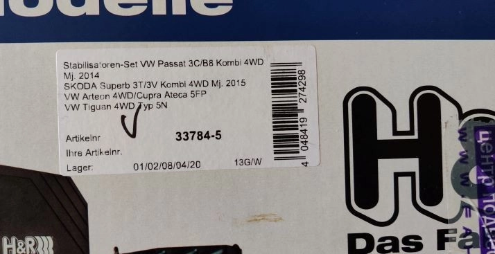 H&R Anti-Roll-Bars 33784-5. Стабилизаторы поперечной устойчивости для VW Tiguan 2 / Skoda Kodiaq / VW Passat 4WD (B8) / Skoda Superb 4WDНовые "усиленные" стабилизаторы H&R для Audi A4 / RS4 / A5 / RS5 (B9) изготовлены из высокопрочной пружинной стали. Точнейшие кованые окончания и применение втулок из запатентованного композитного материала гарантируют остроту управления и значительно уменьшают крены кузова автомобиля.А для того, чтобы добиться максимального эффекта - стабилизаторы H&R можно сочетать со спортивной подвеской или пружинами H&R.Подходит для:Skoda Superb 4WD 2015->, Skoda Kodiaq 4WD,VW Arteon (B8) 2017->, VW Passat 4WD (B8) 2014->, VW Passat Alltrack (B8) 4WD 2014->, VW Tiguan II 4WD 2016->Диаметр переднего стабилизатора: 27 мм, имеет 2 (два) положения регулировки жесткостиДиаметр заднего стабилизатора: 24 мм, не имеет регулировок жесткостиВсе компоненты подвески H&R обрабатываются высококачественной защитой от коррозии и имеют TUV-сертификаты.