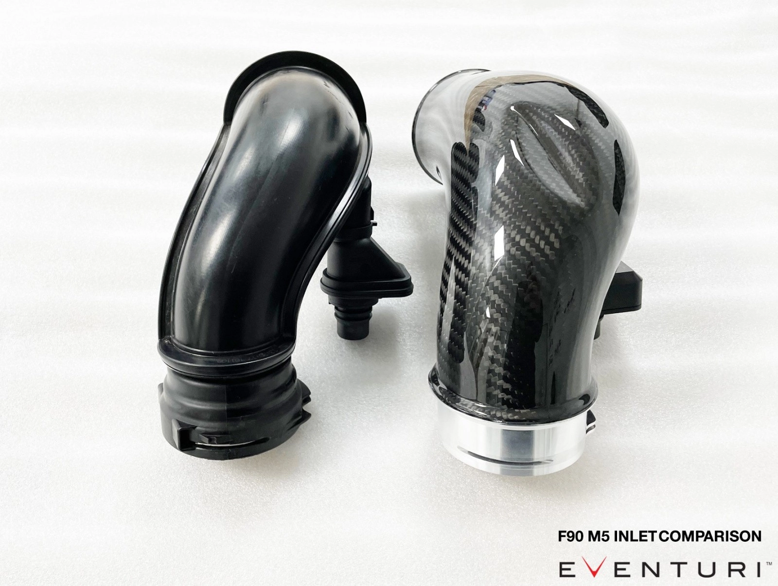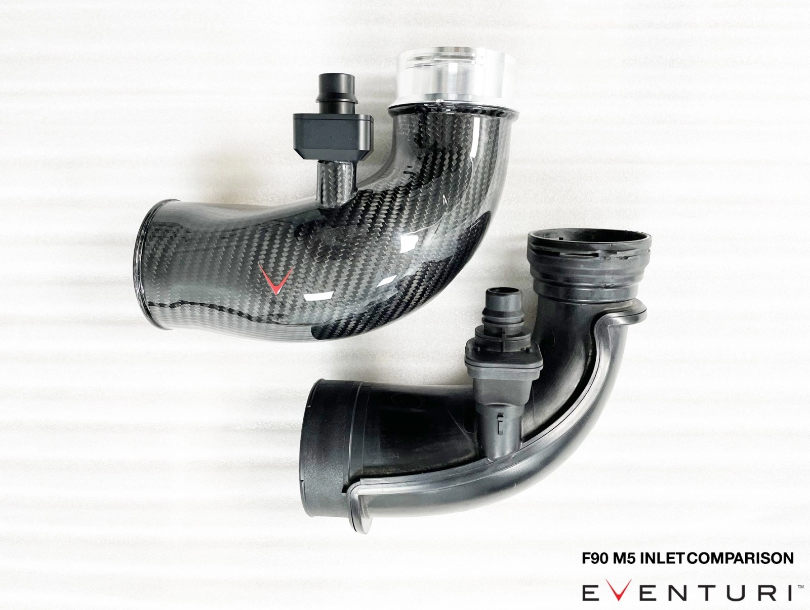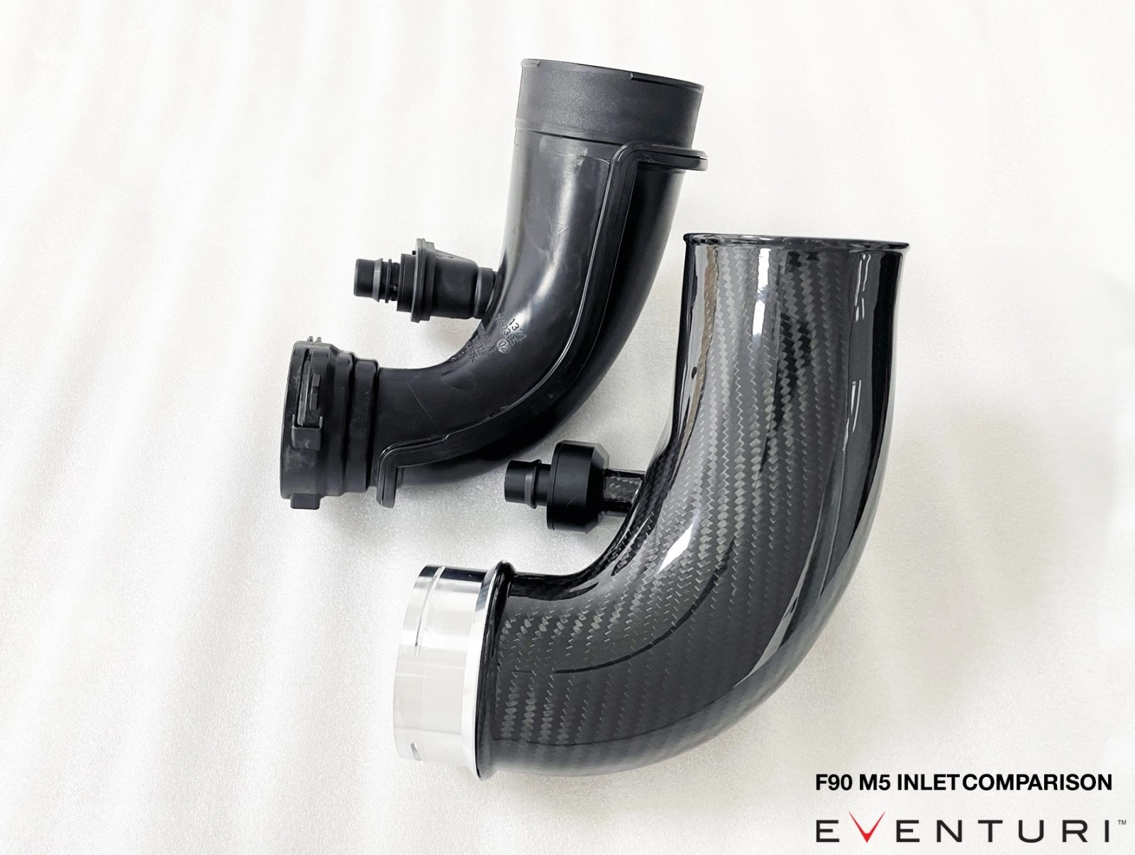 Eventuri Carbon Турбо-инлет пайпы для M5 F90/M8 F92Представляем набор Carbon Turbo Inlet от Eventuri, который оптимизирует путь потока до турбин. Эти карбоновые впускные отверстия имеют больший объем, чем стандартные, за счет сохранения большего диаметра на всем пути к турбинам. Стандартные впускные отверстия сужаются сразу после соединения с впускным отверстием, что создает ограничение, особенно при более высоких уровнях наддува. Ребята из Eventuri смягчили это ограничение, а также сделали изгиб максимально плавным, что позволяет турбинам быстрее достигать пикового наддува