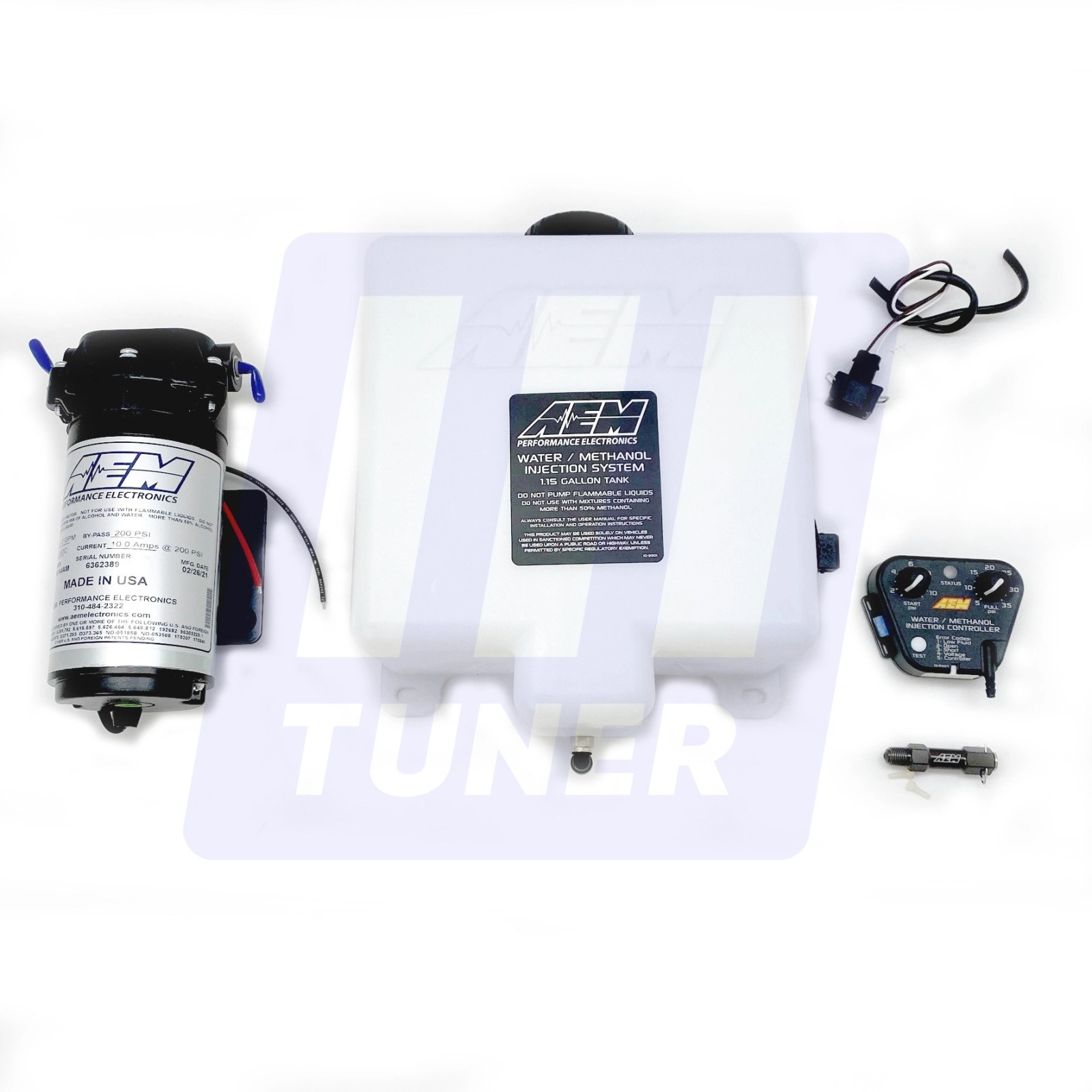 AEM 30-3300 Комплект системы впрыска водо-метанола V3Обновленная версия системы впрыска водо-метанола AEM 30-3300 содержит целый ряд нововведений и улучшений!Улучшена форсунка и распыл, усовершенствован контроллер управления, доработал бак для "воды"!Этот комплект водо-метанола является законченным устройством и не требует внешнего управления.Может быть установлен практически на любой автомобиль.Контроллер имеет встроенный ДАД и позволяет настраивать подачу водо-метанола прогрессивно.Рекомендуется использовать смесь воды и метанола (этанола) в соотношении 50/50"Если говорить коротко, благодаря этому впрыску вы получаете более холодный воздух + более высокое октановое число топлива!Эти 2 основных фактора ведут к значительно более высокой стойкости смеси к возникновению детонации, если говорить об эффекте, то заливая обычный 95 с этой системой, у вас будет такое впечатление что вы ездите на 115м бензине.Как следствие, благодаря высокой стойкости смеси к детонации, у вас появляется возможность настроить топливно-воздушную смесь более бедно, и в тоже время настроить углы зажигания более резкие — эти 2 фактора очень сильно влияют на мощность двигателя — и позволяют значительно ее увеличить."