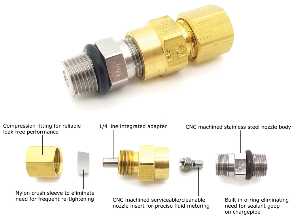<h2>BMS Форсунки BM7 для системы подачи водо-метанола (2 шт. + тройник)</h2>Water Injection Nozzle guide<br /><br />N20/N26: Single BM7<br />N54/N55 with factory turbo(s): Single BM10 or Dual BM5<br />N54/N55 with larger hybrid turbo(s): Single BM12 or dual BM7<br />B48 with factory or larger turbo: Dual BM5<br />B58 with factory or larger turbo: Dual BM7<br />S55 with factory turbo(s): Dual BM5<br />S55 with larger hybrid turbo(s): Dual BM7<br />s63tu with factory or larger turbos: Dual BM10<br />