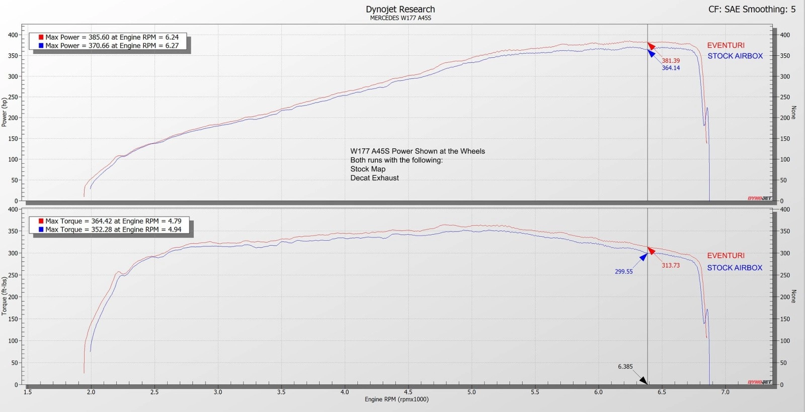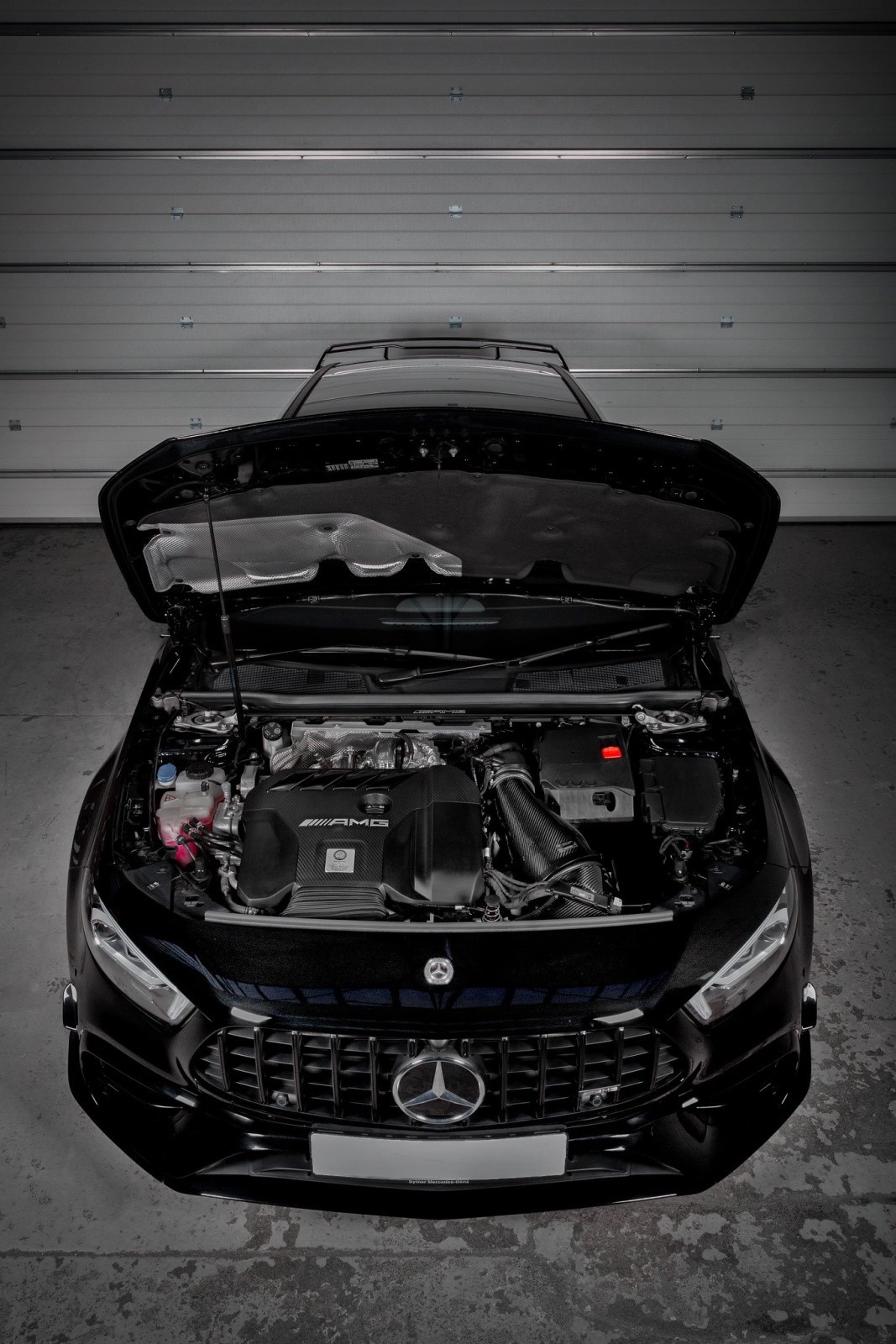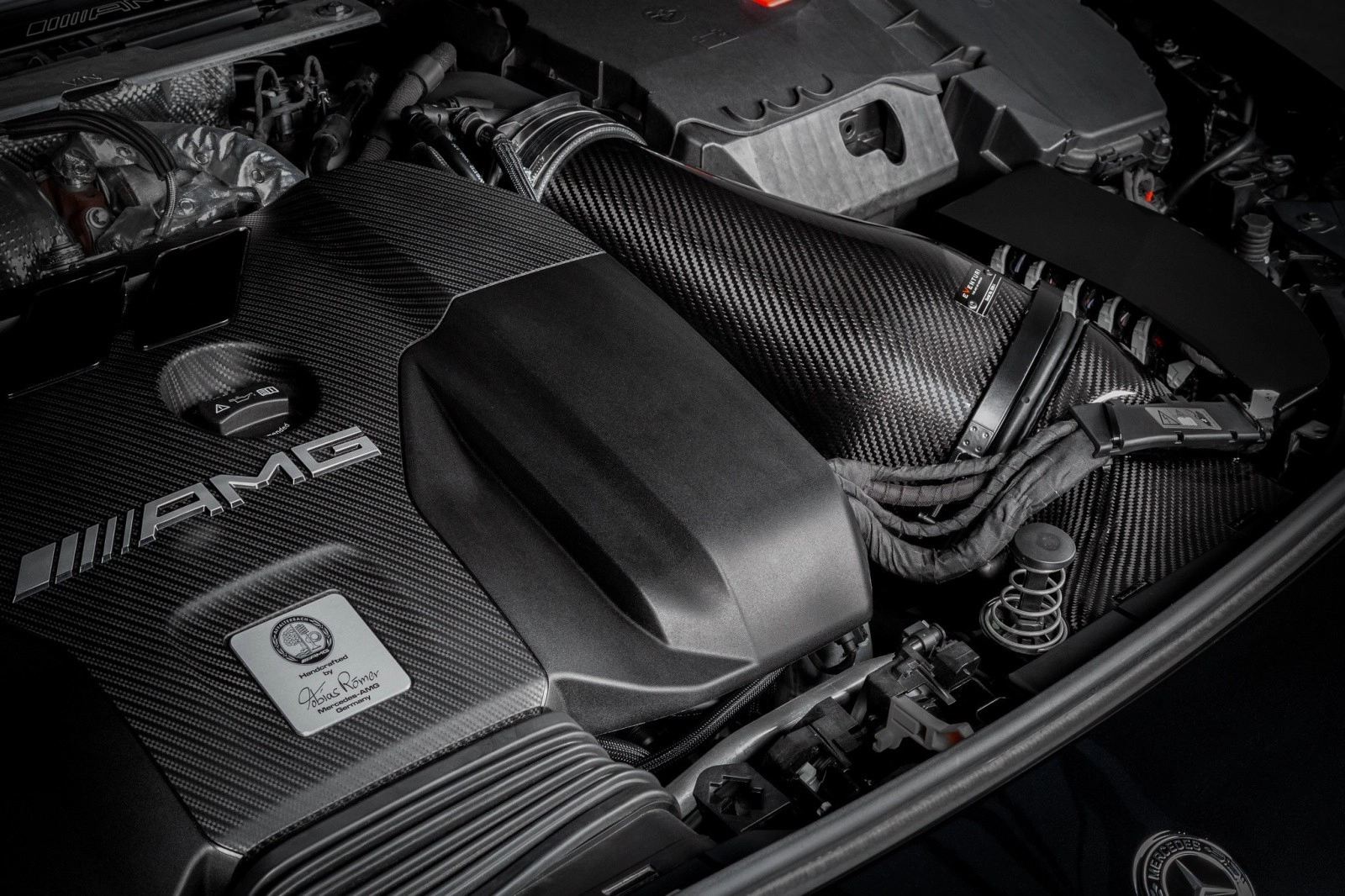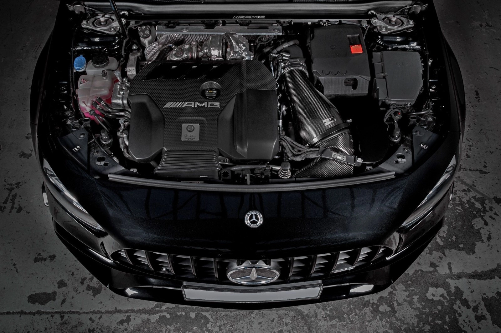 Eventuri EVE-A45S-CF-INT Впускная система из карбона для Mercedes AMG W177 A45 / C118 CLA45Увеличение мощности: 15-17 л.с., 12-15 Н мСистема впуска Eventuri является еще одним примером впуска типа «полная система». Он демонстрирует идеальный баланс между возможностью неограниченного воздушного потока с открытым корпусом фильтра, в то же время поддерживая низкую температуру впускного воздуха путем насыщения холодным воздухом с помощью комбинации направляющей и экрана.Каждая деталь тщательно проработана - от углеродных заготовок до двухслойных теплозащитных экранов.Отличительные особенности:В системе Eventuri используется запатентованный корпус из углеродного волокна, который обеспечивает аэродинамически эффективный путь воздушного потока от фильтра к патрубку MAF. Это не просто еще один конический фильтр с теплозащитным экраном, а уникальный дизайн, который является узнаваемым и уникальным для Eventuri.Каждый компонент разработан для определенной цели и соответствует очень высоким стандартам.
