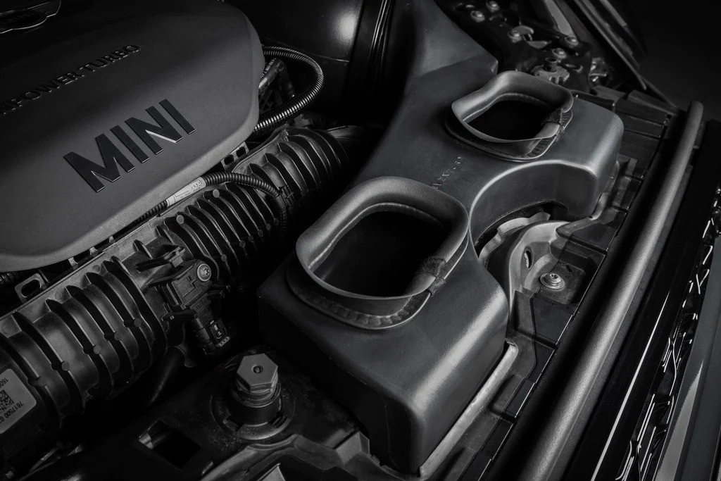 Eventuri EVE-F56-PL-INT Впускная система для F56 Mini Cooper S (карбон+пластик)Платформа F56 обеспечила Eventuri мощную основу для развития — 2,0-литровый двигатель B48. Являясь продолжением продуктовой линейки BMW, Eventuri может в полной мере использовать их обширный опыт в области дизайна и инжиниринга. Их система F56 - еще один пример того, что они называют философией "полной системы". Благодаря полностью герметичной системе, турбонаддув B48 (с помощью карбонового ковша на капоте) обеспечивает постоянный поток окружающего воздуха по внутренним объемным каналам большего размера, а не забирает его из горячего моторного отсека.Сочетание герметичной системы с воздухозаборником обеспечивает более низкую температуру на входе, чем в обычном воздуховоде, и позволяет избежать перегрева, что является распространенной проблемой, особенно в мини-моделях с более высокой мощностью. Для обеспечения максимально плавного потока в турбонаддув запатентованный корпус фильтра Eventuri соединен с МАФ-трубкой, обработанной с ЧПУ.Эта новая пластиковая версия приглашает более широкую аудиторию испытать самое лучшее из известных разработок Eventuri без каких-либо потерь в производительности.Увеличение производительности Cooper S: 8-15 л.с., 15-25 НмУвеличение производительности Cooper JCW: 15-27 л.с., 20-26 НмУскорение V-Box Cooper S: 100-200 км/ч уменьшено на 0,6 секунды