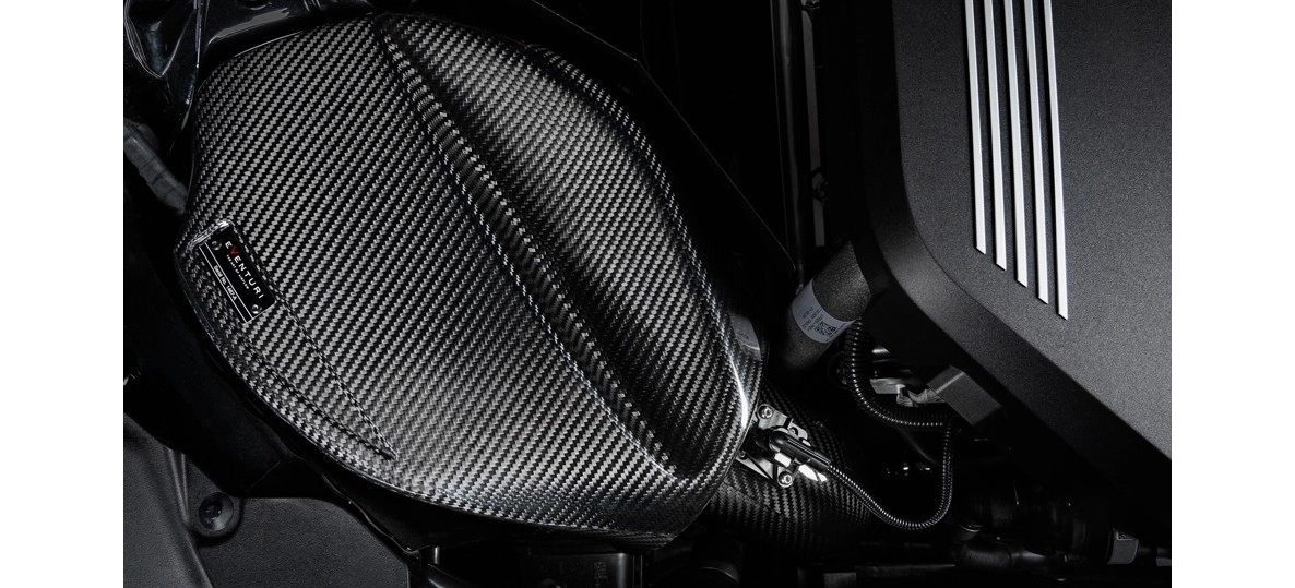 Eventuri EVE-G20B58-V1-INT Впускная система из карбона для G20 B58 (до ноября 2018 года)Увеличение мощности: 10-15 л.с., 12-20 Н мСистема впуска B58 Eventuri является еще одним примером впуска типа «полная система». Он демонстрирует идеальный баланс между возможностью неограниченного воздушного потока с открытым корпусом фильтра, в то же время поддерживая низкую температуру впускного воздуха путем насыщения холодным воздухом с помощью комбинации направляющей и экрана.Каждая деталь тщательно проработана - от углеродных заготовок до двухслойных теплозащитных экранов.Этот впуск устанавливает новый эталон в дизайне и производительности для платформы B58.Отличительные особенности:В системе B58 Eventuri используется запатентованный корпус из углеродного волокна, который обеспечивает аэродинамически эффективный путь воздушного потока от фильтра к патрубку MAF. Это не просто еще один конический фильтр с теплозащитным экраном, а уникальный дизайн, который является узнаваемым и уникальным для Eventuri.Каждый компонент разработан для определенной цели и соответствует очень высоким стандартам. Каждый комплект B58 состоит из:- Карбоновый корпус воздушного фильтра и встроенная трубка MAF- Двухконусный воздушный фильтр с высокой пропускной способностью- Алюминиевый кожух для плавного входа воздуха- Карбоновая направляющая- Карбоновый фильтр- Адаптер под MAF- Двухслойный основной тепловой экран- Двухслойный вторичный тепловой экран- Монтажные кронштейны