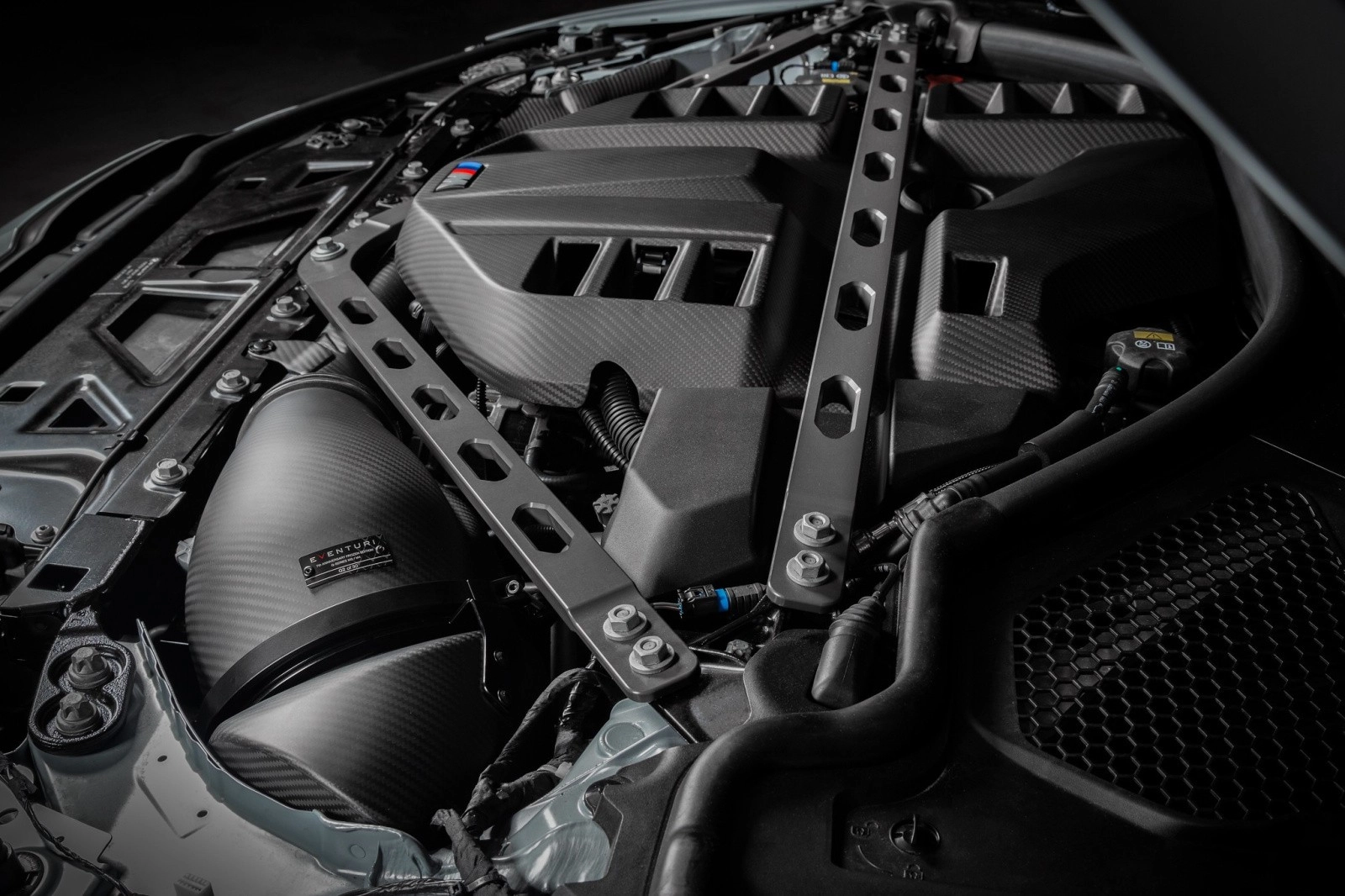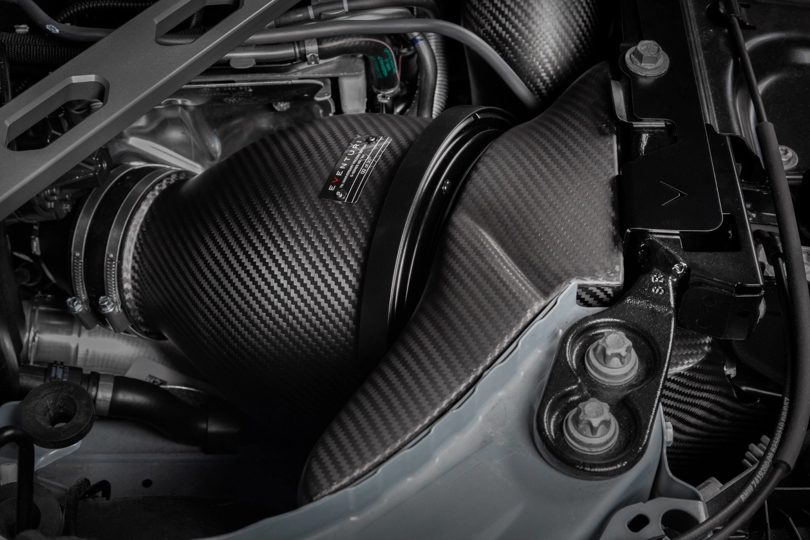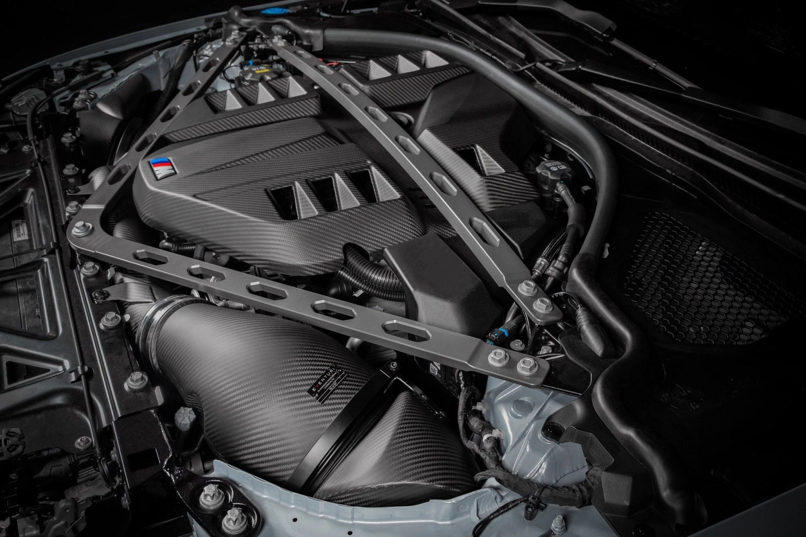 Eventuri EVE-G8XMV2-CFM-INT Карбоновая впускная система для BMW G8X M3 M4 (матовый)Впускная система G8X M3 M4 Eventuri была разработана с помощью всесторонних испытаний в реальных условиях и анализа моделирования воздушного потока.Большие передние воздухозаборники передают окружающий воздух непосредственно в зону впуска, таким образом гарантируя, что двигатель не будет нагреваться. Кроме того, золотые теплоотражающие футерованные экраны имеют встроенные направляющие потока, которые направляют окружающий воздух из корпусов в фильтры.Также удалось увеличить площадь поперечного сечения впускного патрубка. Это позволяет турбинам работать с меньшим сопротивлением.Устаревший артикул: EVE-G8XM-CF-INT