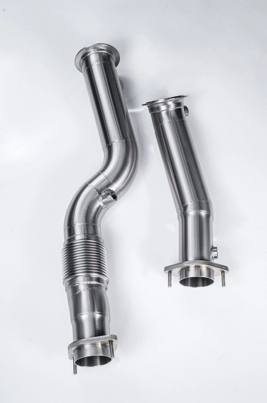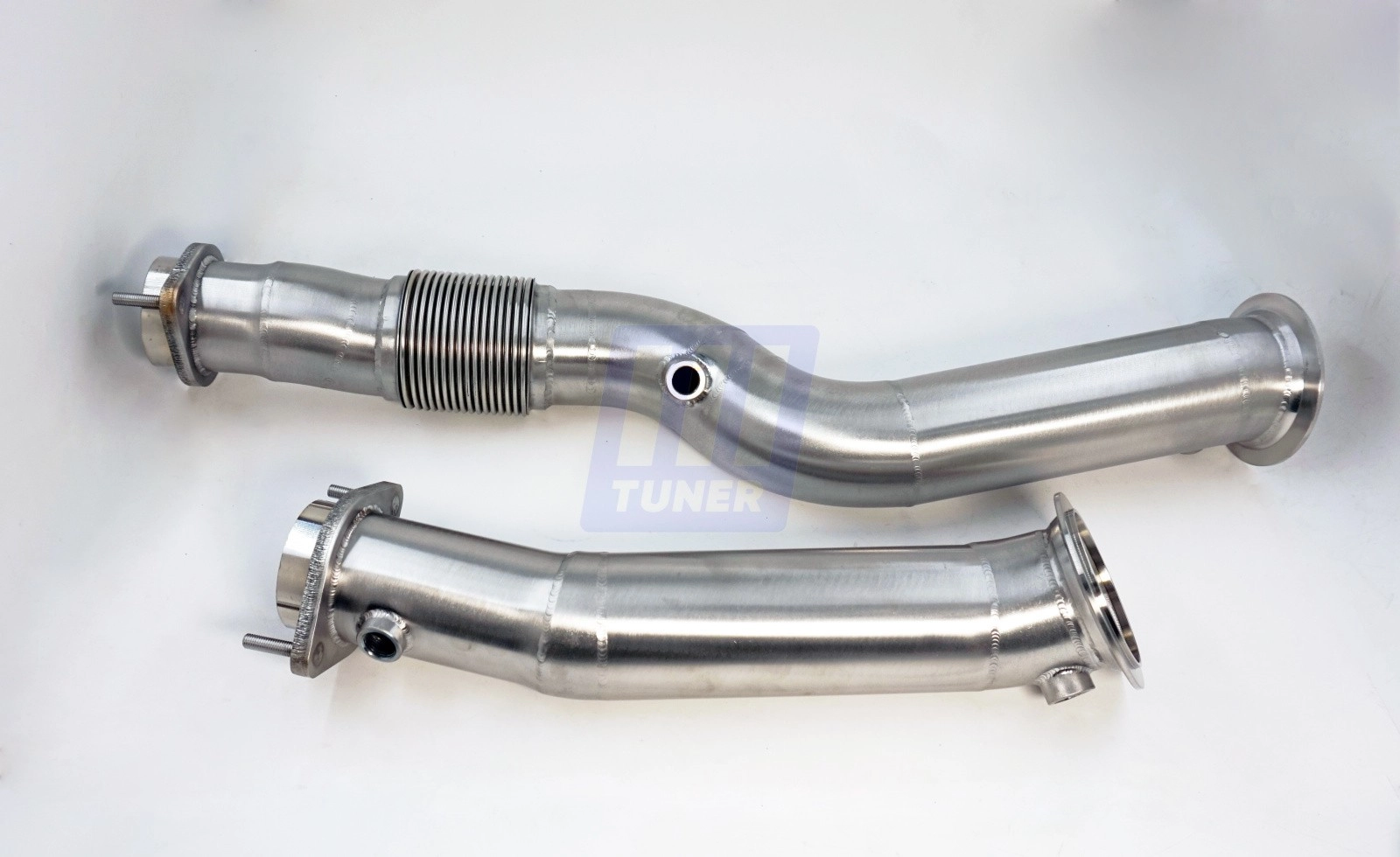 Bronko DS58G80 Даунпайпы без катализаторов для S58 BMW M3 & M4 G80, G82, G83Вместо традиционного сужения ближе к турбинам - эти даунпайпы имеют гладкую изогнутую форму, которая обеспечивает значительное увеличение скорости выхода выхлопных газов.Изготовлено вручную из нержавеющей стали 304!Фланцы из нержавеющей стали изготовленные на станках ЧПУ.Подходит для:2020 – 2023 G80 BMW M3 RWD & AWD включая Competition2020 – 2023 G82/G83 BMW M4 M3 RWD & AWD включая Competition