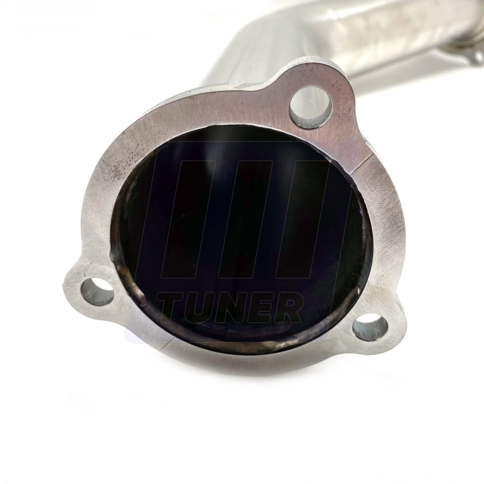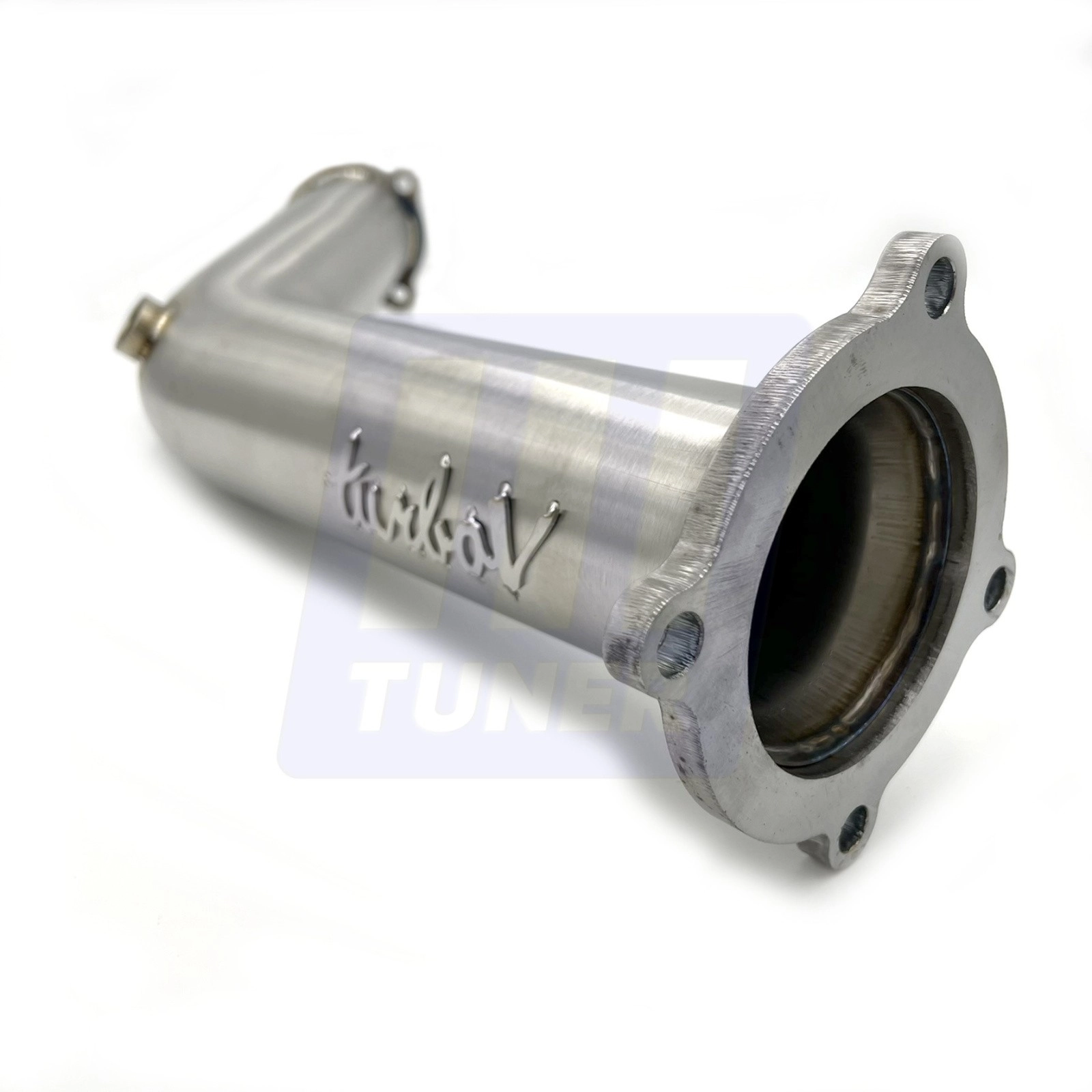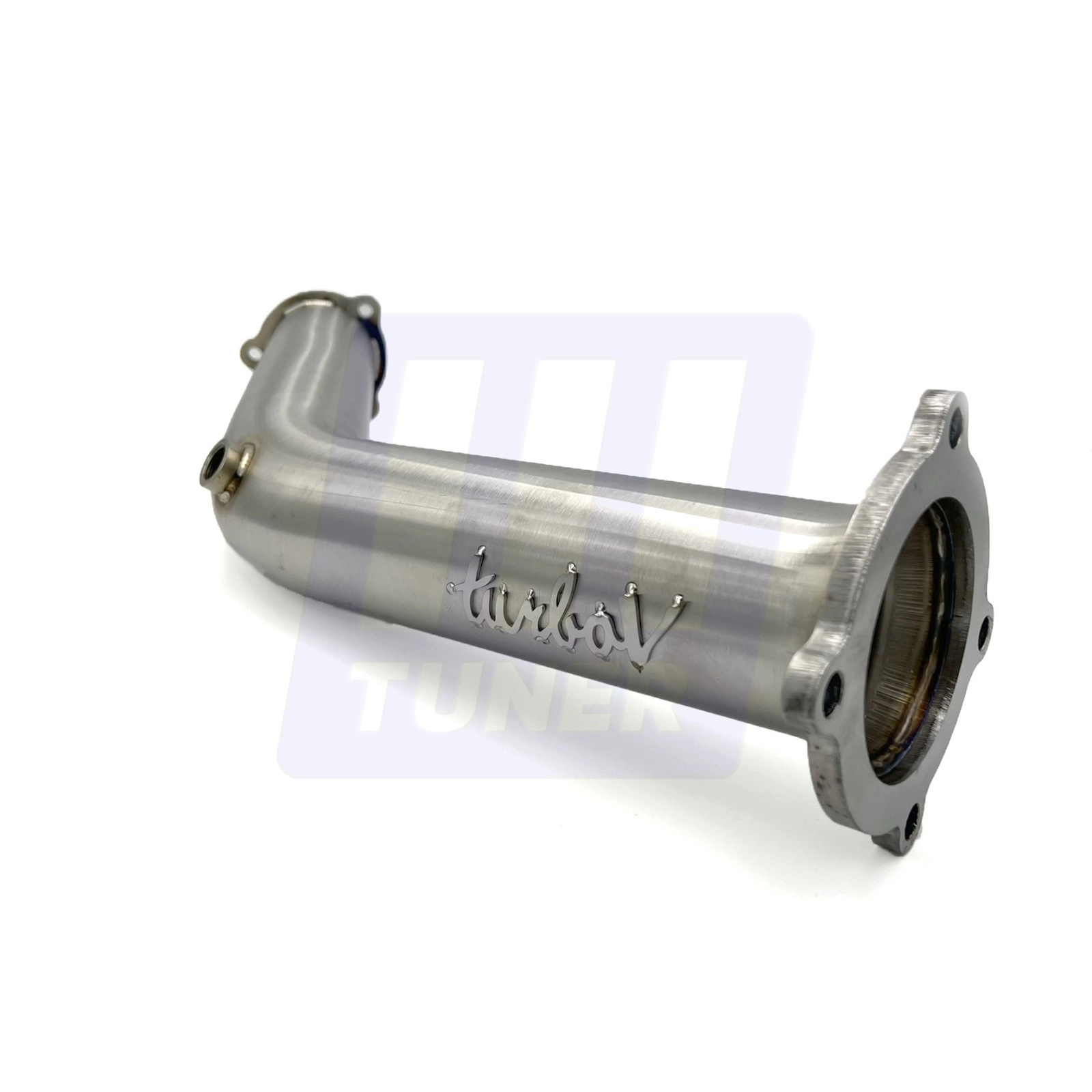Turbo-V Даунпайп без катализаторов для Audi A4 (B8.5) / A5 / Q5 с двигателями Gen3.Основные характеристики:спроектирован и произведен в России с помощью технологий 3Д сканирования и 3Д моделированиявыполнен из нержавеющей стали марки AISI 304, обладающей высокой температурной стойкостьюдаунпайп имеет диаметр 76.1мм (3 дюйма)за счет применения ЧПУ трубогиба количество сварных швов на трубе уменьшено с 4-х до 2-хвыход из фланца турбины с плавным переходом с 89мм до 76.1ммустановка болт-онОсобенности сварки TIG:используется специальный инертный газ для сварки нержавеющих сталей (смесь аргона и водорода), уменьшающий слой окислов на поверхности шва, а также позволяющий при меньшем токе добиться полного проваривания сварного швана всех этапах сварки инертный газ подается внутрь трубы, что обеспечивает качественные и прочные соединенияпосле сварки все сварные швы полируются для удаления оксидной пленки (т.н. цветов побежалости), т.к. она служит очагом коррозии