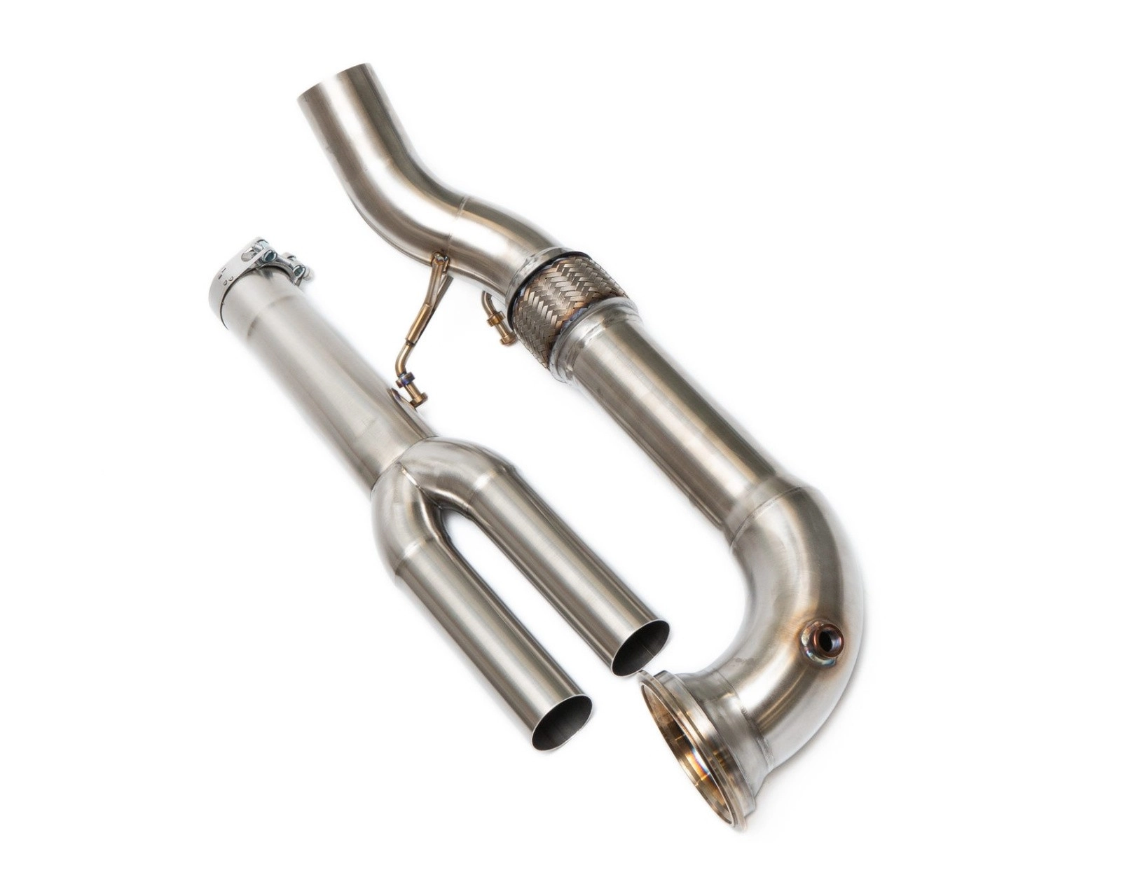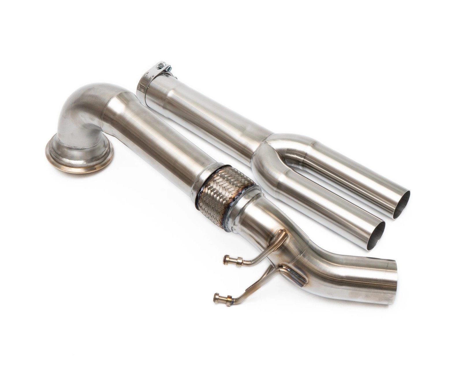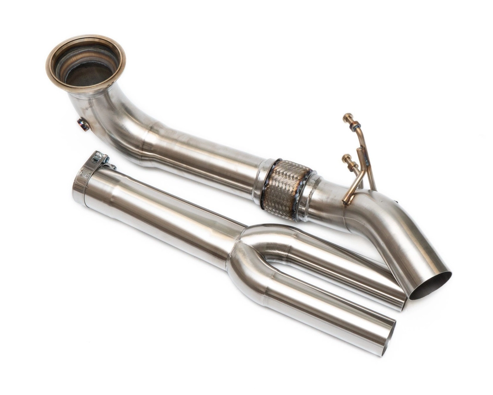 Turbo-V Даунпайп без катализаторов для Audi RS3 (8V)Основные характеристики:спроектирован и произведен в России с помощью технологий 3Д сканирования и 3Д моделированиявыполнен из нержавеющей стали марки AISI 304, обладающей высокой температурной стойкостьюдаунпайп имеет диаметр 88.9мм (3.5 дюйма) с плавным переходом сначала в 76.1мм (3 дюйма), а затем в раздвойку диаметром 60/65мм для стыковки со штатной выпускной системойфланец турбины выточен на токарном станке ЧПУ из нержавеющей стали AISI 304, что гарантирует надежное соединение и отсутствие утечеквыход из фланца турбины с плавным переходом с 110мм до 88.9ммустановка болт-он – даунпайп состоит из двух частей для удобства при установке, сохранено штатное место крепления к кузовуОсобенности сварки TIG:используется специальный инертный газ для сварки нержавеющих сталей (смесь аргона и водорода), уменьшающий слой окислов на поверхности шва, а также позволяющий при меньшем токе добиться полного проваривания сварного швана всех этапах сварки инертный газ подается внутрь трубы, что обеспечивает качественные и прочные соединенияпосле сварки все сварные швы полируются для удаления оксидной пленки (т.н. цветов побежалости), т.к. она служит очагом коррозииДиаметр трубы: 3'-3.5'