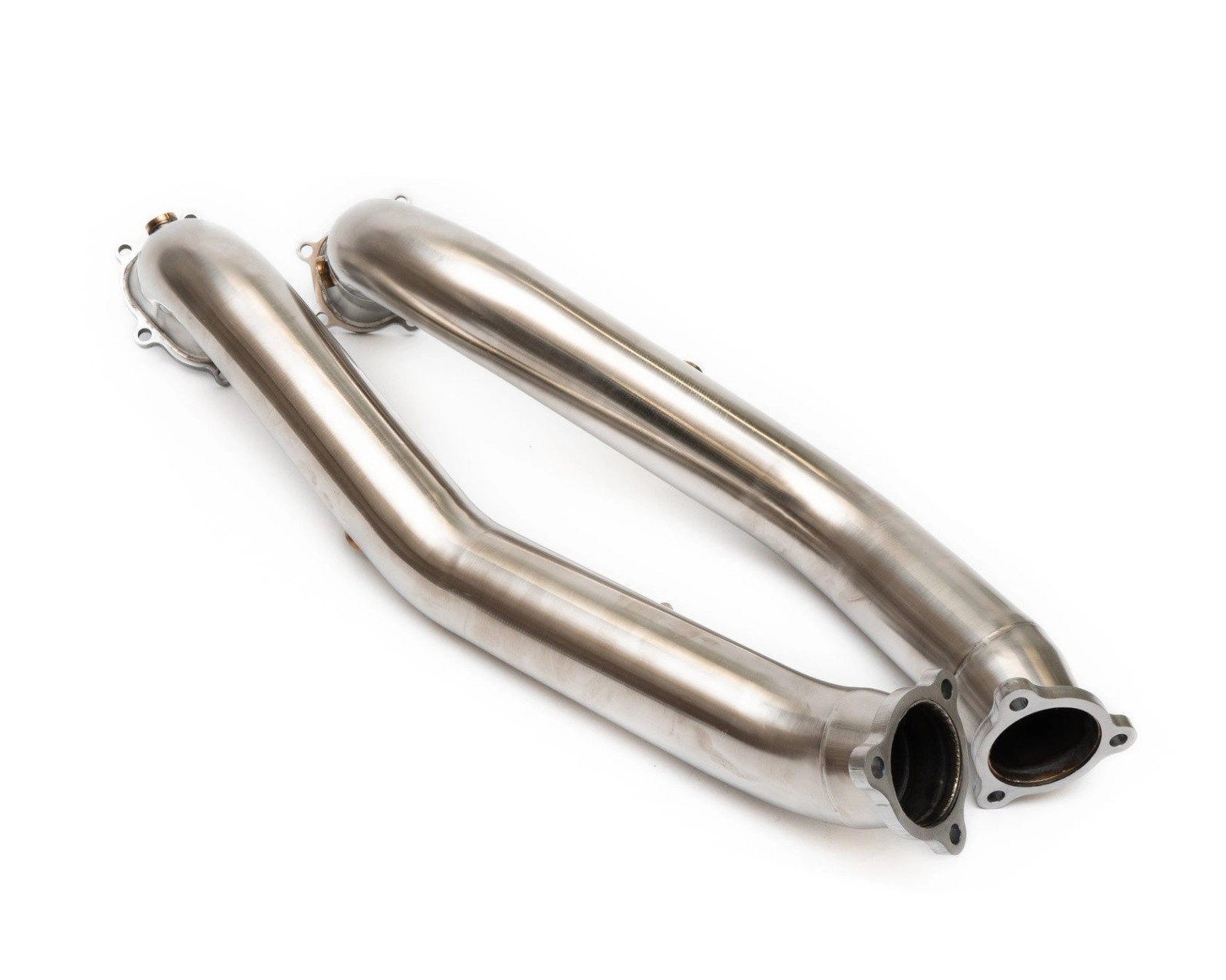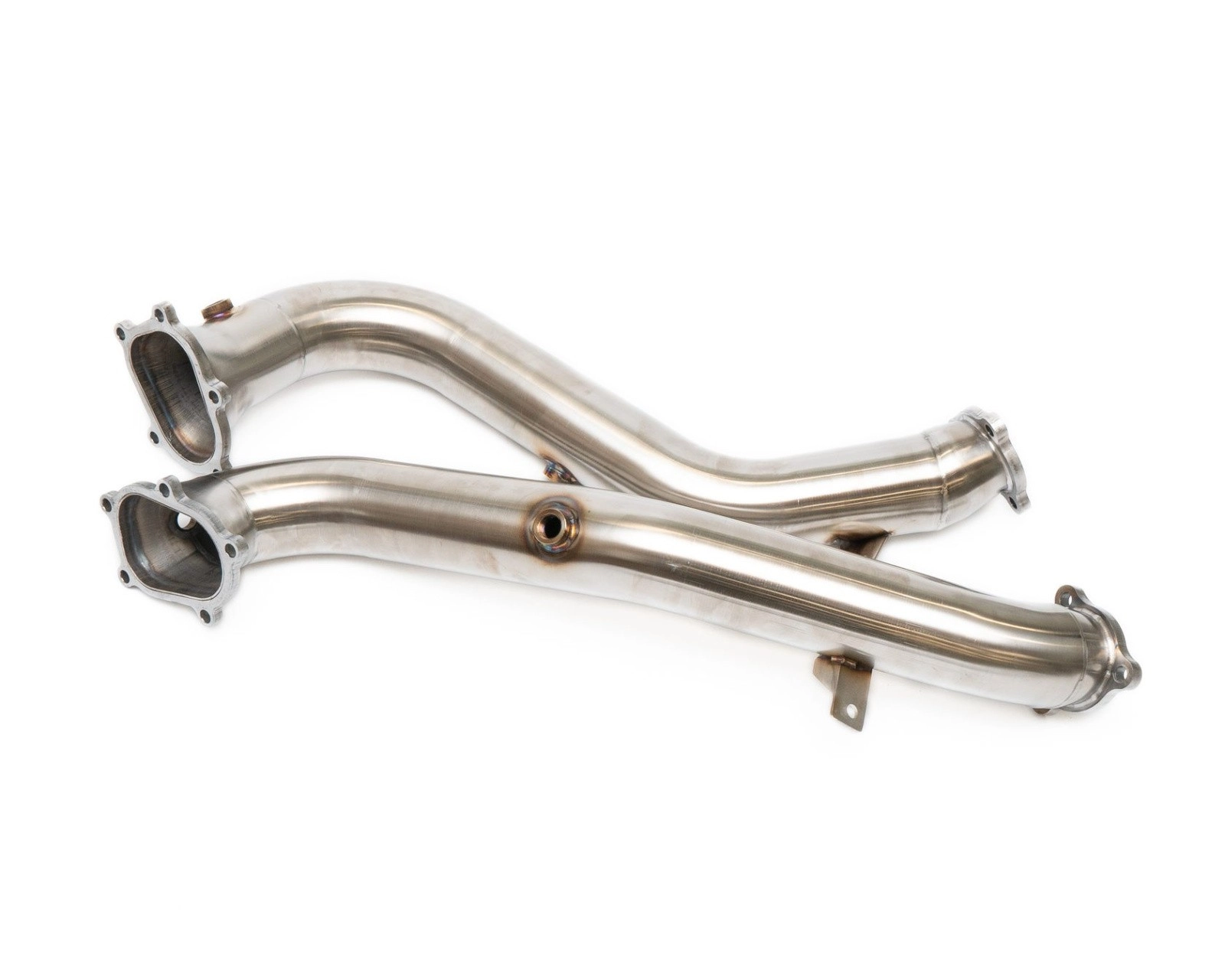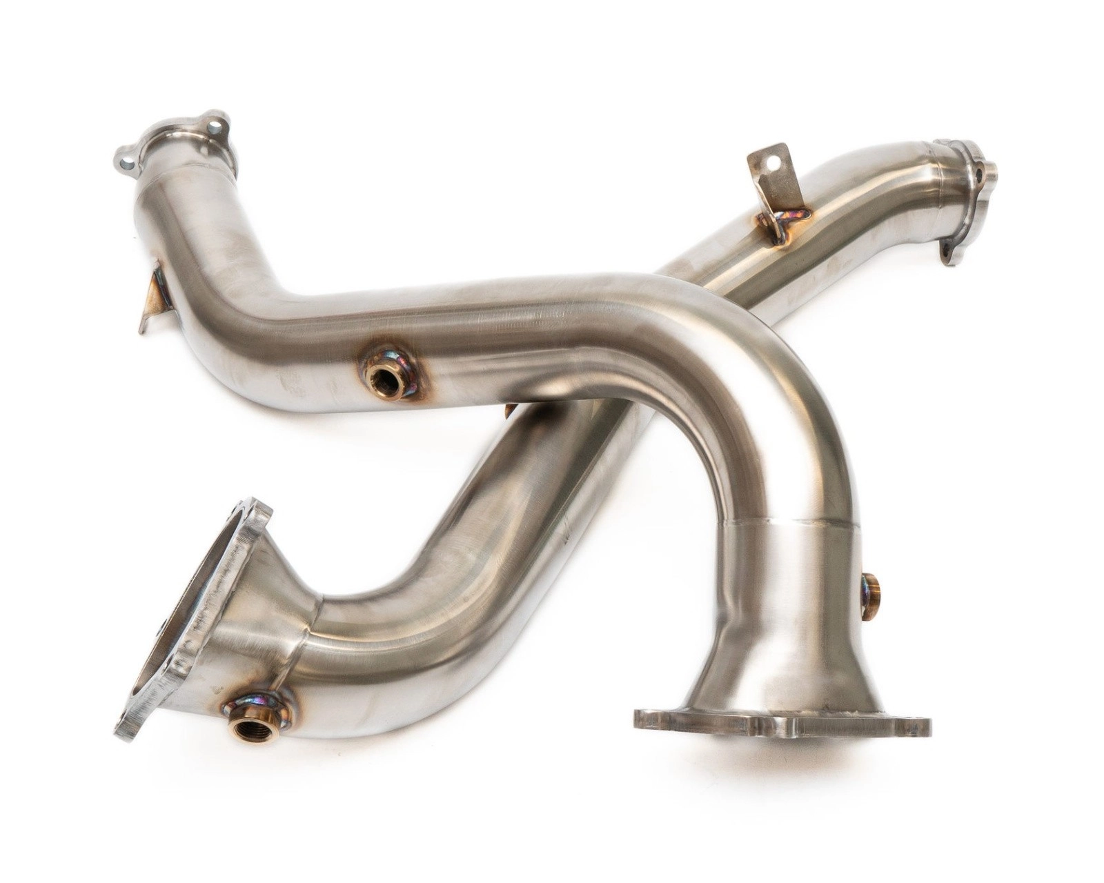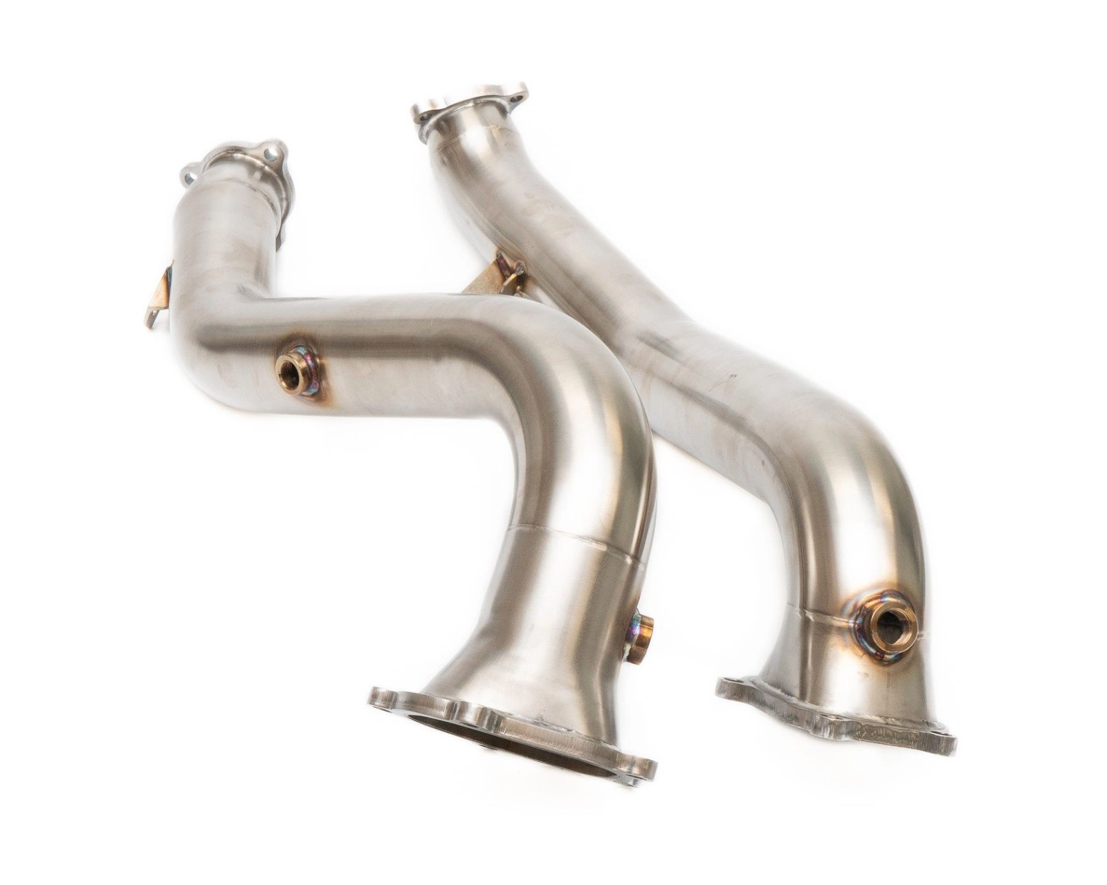 Turbo-V Даунпайпы без катализаторов для Audi S6 S7 RS6 RS7 A8 S8 4.0 TFSIОсновные характеристики:спроектированы и произведены в России с помощью технологий 3Д сканирования и 3Д моделированияпроизводственный процесс включает в себя использование ЧПУ дорнового трубогиба - количество сварных швов уменьшено в три раза с 12-и до 4-х (без учета швов на фланцах)выполнены из нержавеющей стали марки AISI 304, обладающей высокой температурной стойкостьюдаунпайпы имеют диаметр 76.1мм (3 дюйма) с плавным переходом в 65мм для стыковки со штатной выпускной системойтрубы, выходящие из фланцев турбин отформованы из толстостенной трубы с помощью специальных пресс-форм на гидравлическом прессеустановка болт-он – сохранены штатные места креплений для надежной эксплуатацииОсобенности сварки TIG:используется специальный инертный газ для сварки нержавеющих сталей (смесь аргона и водорода), уменьшающий слой окислов на поверхности шва, а также позволяющий при меньшем токе добиться полного проваривания сварного швана всех этапах сварки инертный газ подается внутрь трубы, что обеспечивает качественные и прочные соединенияпосле сварки все сварные швы полируются для удаления оксидной пленки (т.н. цветов побежалости), так как она служит очагом коррозииДиаметр трубы: 3'Деталь: ДаунпайпПодходит для моделей: A8 (D4)Подходит для моделей: S8 (D4)Подходит для моделей: S6 (C7)Подходит для моделей: RS6 (C7)Подходит для моделей: S7 (4G8)Подходит для моделей: RS7 (4G8)