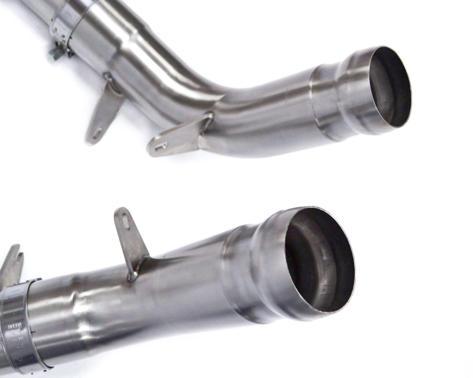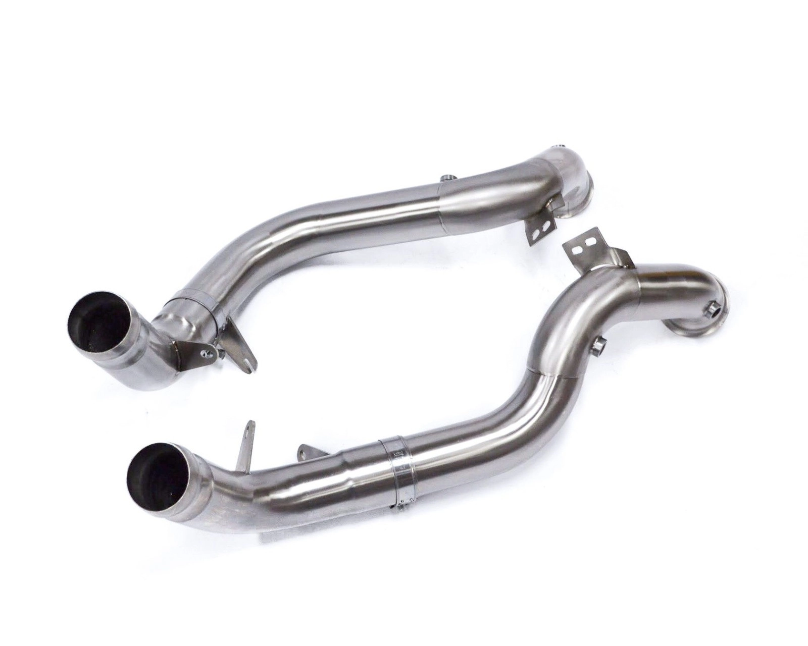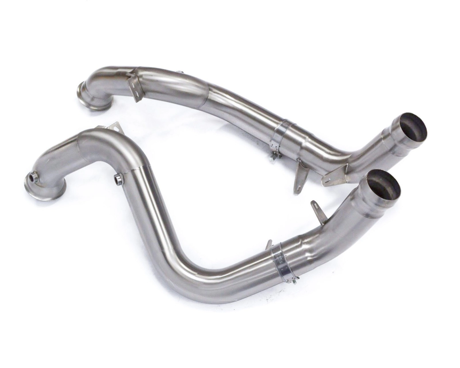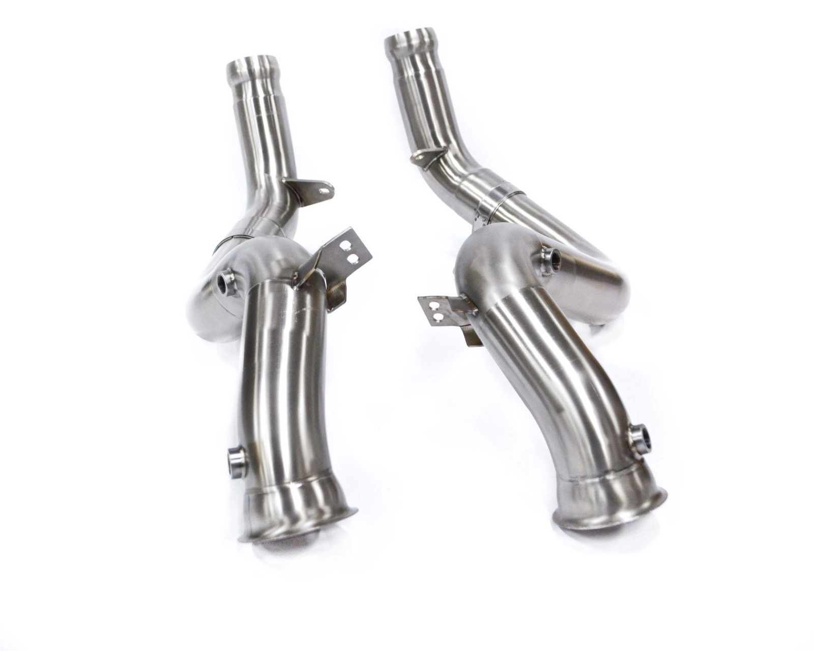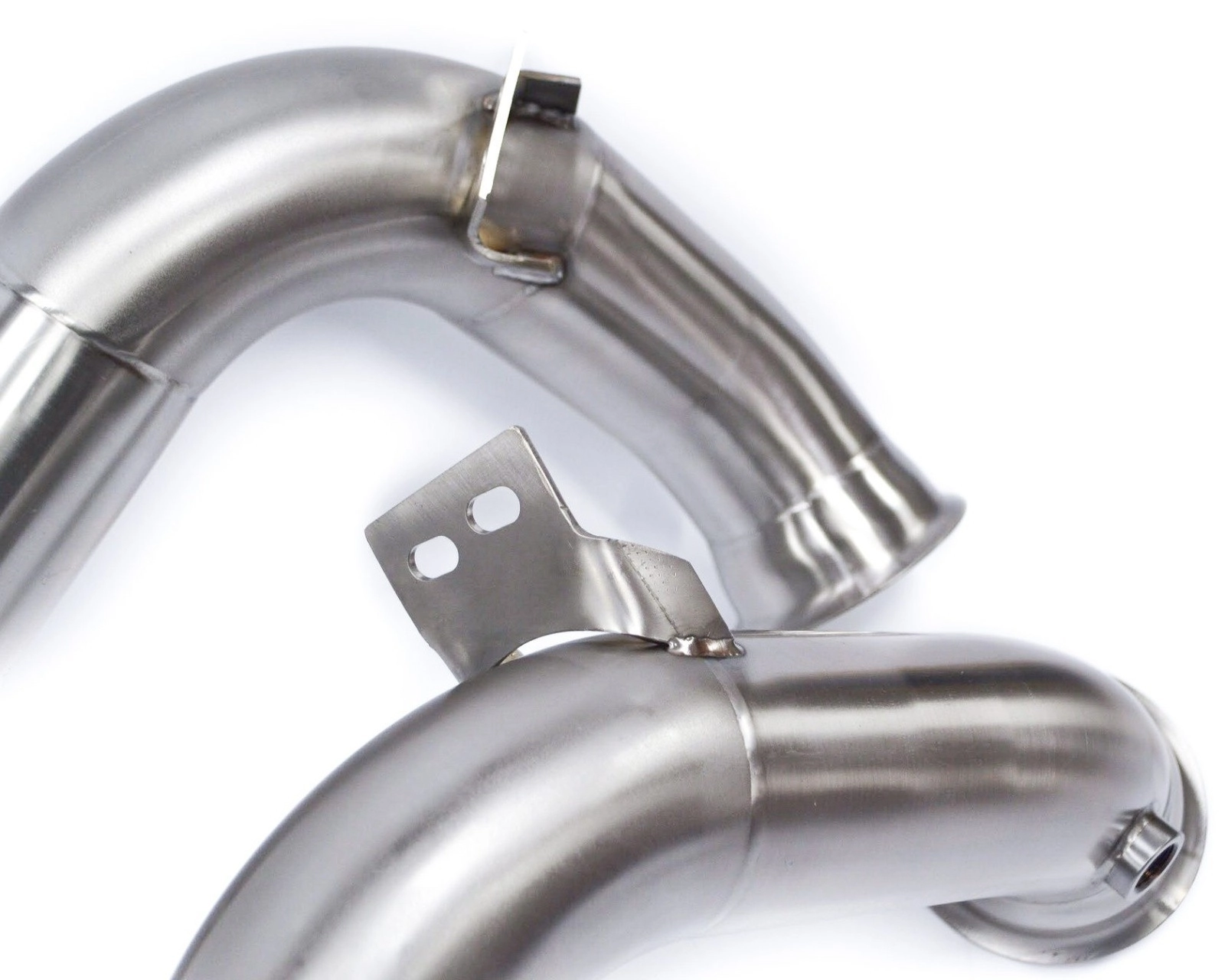Turbo-V даунпайпы без катализаторов для Mercedes-Benz E63/E63S AMGУстановка данных даунпайпов является неотъемлемой частью тюнинга ЭБУ Stage 2, который позволяет увеличить мощность и крутящий момент до 750 л.с. и 1100Нм со штатных 571 л.с. и 750Нм.Основные характеристики:спроектированы и произведены в России с помощью технологий 3Д сканирования и 3Д моделированияпроизводственный процесс включает в себя использование ЧПУ дорнового трубогиба для уменьшения количества сварных соединенийвыполнены из нержавеющей стали марки AISI 304, обладающей высокой температурной стойкостьюфланцы, соединяющие даунпайпы с турбиной и задней частью выхлопной системы, отформованы из толстостенной трубы с помощью специальных пресс-форм на гидравлическом прессеОсобенности сварки TIG:используется специальный инертный газ для сварки нержавеющих сталей (смесь аргона и водорода), уменьшающий слой окислов на поверхности шва, а также позволяющий при меньшем токе добиться полного проваривания сварного швана всех этапах сварки инертный газ подается внутрь трубы, что обеспечивает качественные и прочные соединенияпосле сварки все сварные швы полируются для удаления оксидной пленки (т.н. цветов побежалости), т.к. она служит очагом коррозииДиаметр трубы: 3'Подходит для моделей: E63 AMG (W213)Подходит для моделей: E63S AMG (W213)