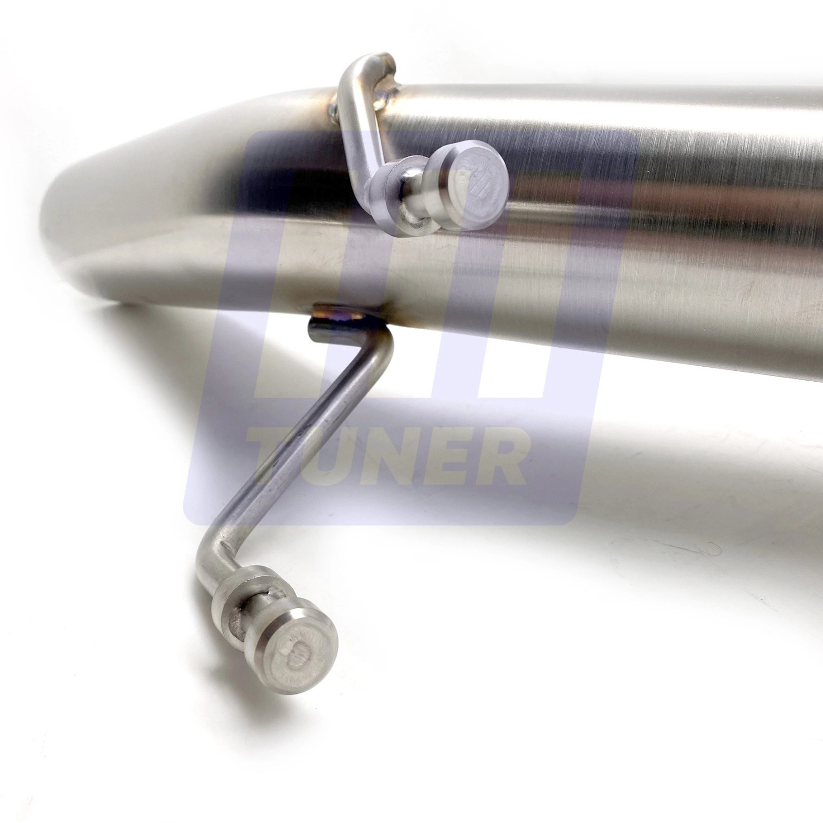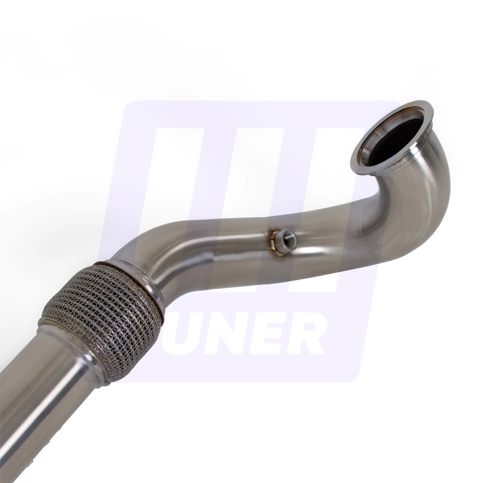 Turbo-V Даунпайп без катализатора для VW newTiguan / Passat Alltrack 2.0 TSI 220hpОсновные характеристики:спроектирован и произведен в России с помощью технологий 3Д сканирования и 3Д моделированиявыполнен из нержавеющей стали марки AISI 304, обладающей высокой температурной стойкостьюдаунпайп имеет диаметр 76.1мм (3 дюйма) с плавным переходом в 65мм для стыковки со штатной выпускной системойза счет применения ЧПУ трубогиба количество сварных швов на трубе уменьшено с 14-и до 5-ифланец турбины выточен на токарном станке ЧПУ из нержавеющей стали AISI 304, что гарантирует надежное соединение и отсутствие утечекустановка болт-он – даунпайп состоит из двух частей для удобства при установке, сохранено штатное место крепления к кузовуОсобенности сварки TIG:используется специальный инертный газ для сварки нержавеющих сталей (смесь аргона и водорода), уменьшающий слой окислов на поверхности шва, а также позволяющий при меньшем токе добиться полного проваривания сварного швана всех этапах сварки инертный газ подается внутрь трубы, что обеспечивает качественные и прочные соединенияпосле сварки все сварные швы полируются для удаления оксидной пленки (т.н. цветов побежалости), т.к. она служит очагом коррозииДиаметр трубы: 3'Подходит для моделей: Tiguan (MQB), Passat B8 Alltrack